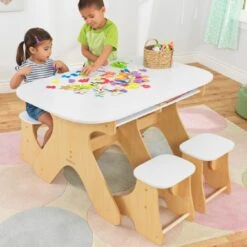 Finding children’s furniture that’s fun, functional and fits into the design of your home is sometimes difficult. But the KidKraft Arches Expandable Table and Bench Set can accomplish all tasks with ease. Its modern, streamlined design fits in nicely in a playroom, bedroom or living area. It can be used as a craft table, desk or even snack table, depending on the activity of the day. And, since we realize space is at a premium in most homes, we’ve designed this kid’s set to maximize its value without taking up valuable real estate in your home.