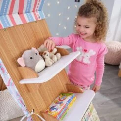 The KidKraft Book Nook Tent with Shelves provides a playful place for both holding books and reading them. Its unique teepee design is not only practical but fun too. Slanted sides provide plenty of space to hold kids’ favorite reading material. Three shelves on each side have built-in bookends too to keep books from sliding off. Inside the fabric front is a quaint area for kids to read, nap, or just have quiet playtime. Tie back the curtains on each side to provide some additional light. With the sturdy wood construction, parents will be thrilled to finally have a bookshelf that’s as adorable as it is functional.