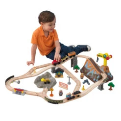 The Kidkraft Bucket Top Construction Train Set will allow hours of playing time. This 61-piece set is full of industrial details designed for imaginations. The magnetic train and truck pull up to the quarry where a wooden bulldozer awaits. A working crane that lifts and lowers cargo next to the steep trestle ramp. The wooden track is so long, kids will play together as the vehicles loop up, down and around trees, traffic signs. The set is constructed from wood and it packs away neatly in its bucket when playtime is over.