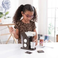 The KidKraft Baking Set has everything little chefs need to create delicious fun. Kids can raise and lower the wooden mixer paddle as they add the included ingredients: eggs, flour, sugar and milk. The working rolling pin adds to the fun and the finished, realistic cookies look delicious on the included baking sheet. The sturdy wood and molded plastic construction make this a delicious addition to any playspace.