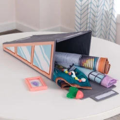 Kids can put their personalized decorating touches on the KidKraft Designed by Me™: Magnetic Makeover Dollhouse. This innovative dollhouse includes eight fabric wallpapers that magically stick to the backgrounds for a quick-change redesign. Magnets can then be added to the walls to personalize. There’s even surprise hidden storage in the furniture. The architectural style is airy, modern and bright. When playtime is over, everything stores neatly in the bin that also doubles as a roof. Be creative and design your own home with the Magnetic Makeover Dollhouse.