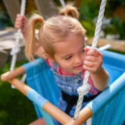 The canvas square swing has a safety lap belt for security, and the soft-touch rope is easier on little hands so both parents and kids can thoroughly enjoy the new experience. Add this wooden set to your backyard lineup of active play toys to give kids a well-rounded fun time in the outdoors. With heavy-duty, durable components and water-based, child-friendly stain, this set is ready to withstand the seasons.