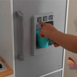 Serve up hours of imaginative fun for aspiring chefs with the KidKraft Gourmet Chef Play Kitchen with EZ Kraft Assembly™! Featuring a spacious refrigerator with play ice maker, a deep freezer and a microwave with a showcase door, this modern kitchen has everything gourmet chefs need to make mealtime deliciously fun. Three interactive knobs click when firing up the extra-large oven and cooktop with chic ventilation hood. Youngsters can learn practical skills as they play with the sink’s red and blue labeled handles to indicate hot and cold water. The included spoon, spatula and pot holder have their very own hanging pegs above the stove, and the shelf space above the sink makes learning to organize fun and easy. With the KidKraft Gourmet Chef Play Kitchen with EZ Kraft Assembly™, kids are bound to create tasty memories as they’re transformed into little chefs. Parents will love how fast and easy it is to assemble this play kitchen with our innovative EZ Kraft Assembly™ technology, which means less building time and more playing time!