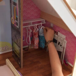 - Walk-in closet with 3 hangers for 12” doll clothes