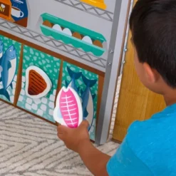Role playing at a restaurant has never been this immersive (and simple to set up). At the KidKraft Let’s Pretendâ„¢ Restaurant Pop-Up, kids can play being a waiter, chef or customer. With specific areas for each scenario plus accessories, play is engaging, realistic and interactive for multiple kids at once. Learn the farm to table experience and how food goes from garden to kitchen to plate. See which fruits and veggies grow from the tree or the ground. Wooden play food pieces stick on the farm wall so kids can “pick” their produce, then proceed to the kitchen to cook up a gourmet meal for the dining patrons. There are so many opportunities for role playing and creating imaginative stories by themselves or with family and friends. When playtime is over, simply fold the sides in toward the middle for a flattened design that stows out of the way.