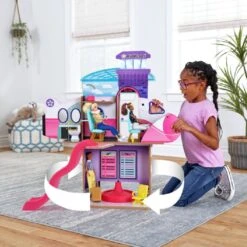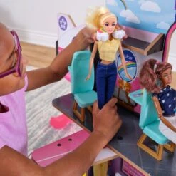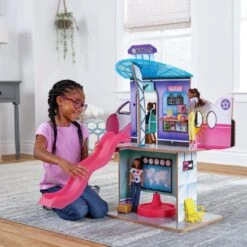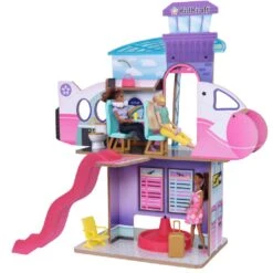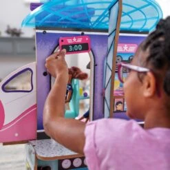 Travel in style with the Kidkraft Luxe Life 2-in-1 Airport and Jet. This wooden play set provides a unique site for dolls to act out adventures. All aspects of plane travel are represented, and with the spinning base, it’s easy to go between the two sides. Check in and grab your boarding pass when you arrive. Then venture upstairs to grab a quick snack before your flight. Go to your gate when it’s time to board.