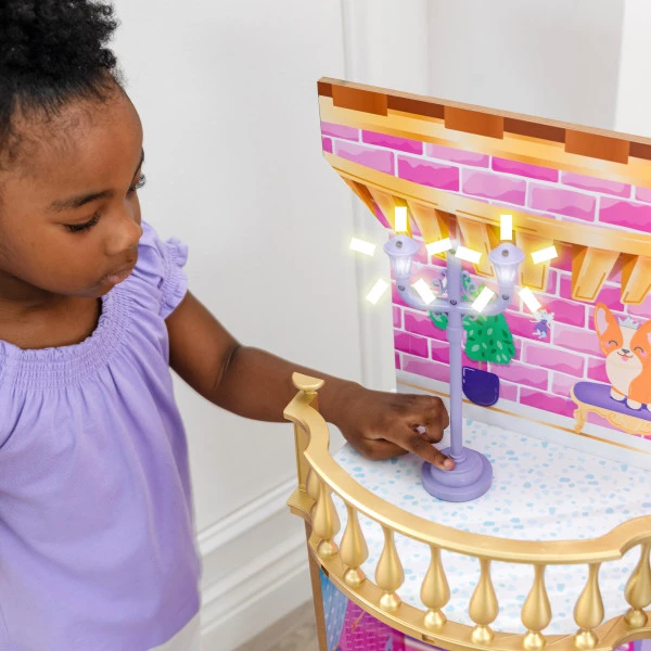 There’ll never be a dull moment in the KidKraft Princess Party Castle filled with fancy royal furniture, festive décor and a luxe rooftop. Standing over four feet tall, with four levels of play, this castle is a dream come true. Fully furnished with royal accessories and lights and sounds help bring the palace to life. There are so many unique rooms to visit—the garden area with fountain, the curved balcony plus the rooftop terrace that can be reached by ladder. Each place awaits magical stories to be made in them. Bold colors help continue the celebratory atmosphere, where every day is happy, dreamy and lots of fun.