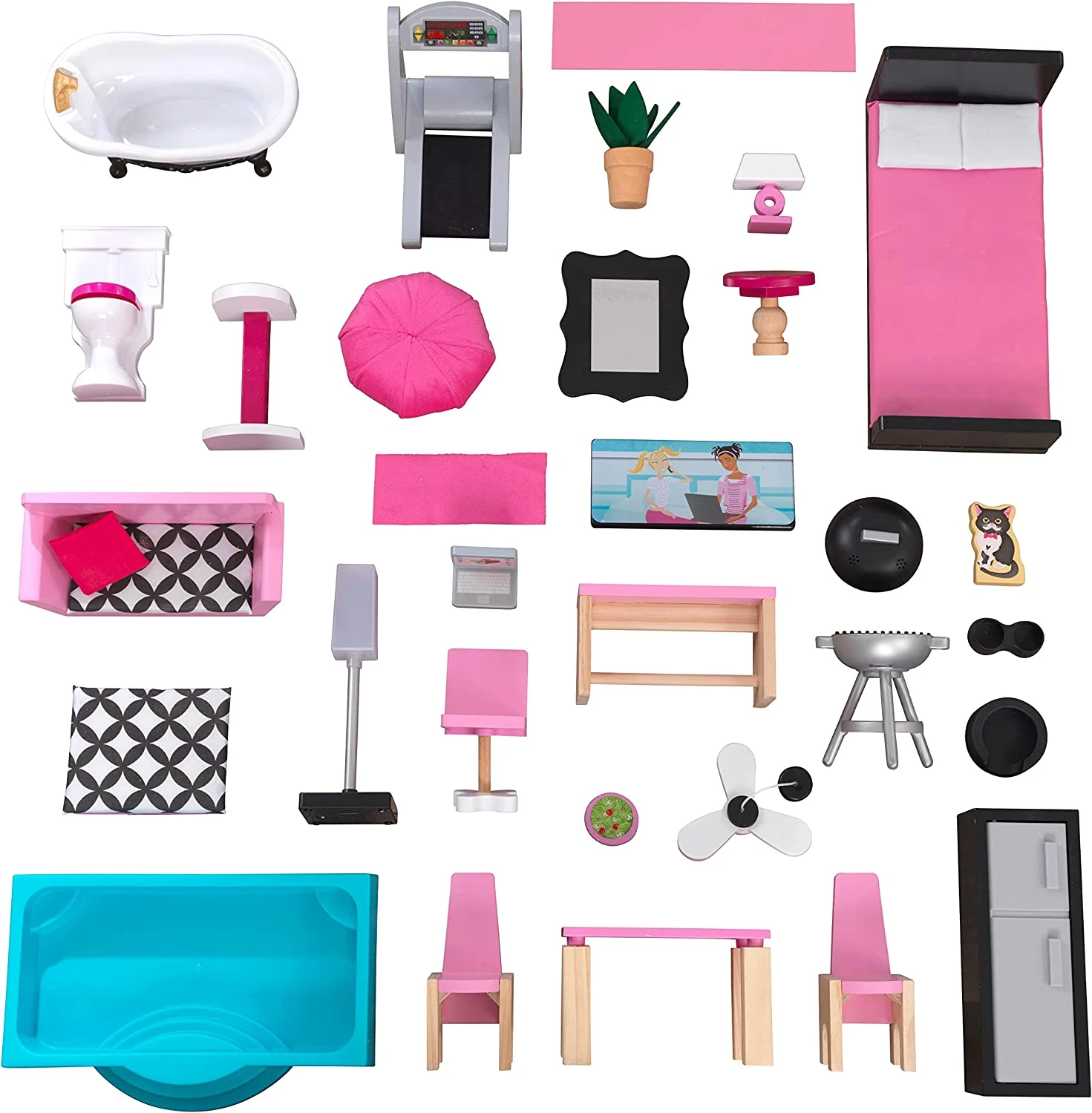 - Over 5 feet tall with four levels and 8 rooms, this sleek home will ignite imaginative stories for all dolls over and over again