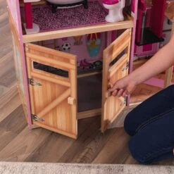 KidKraft Shimmer Mansion Wooden Dollhouse for 12-Inch Dolls with Lights & Sounds and 30-Piece Accessories, Gift for Ages 3+ , Pink