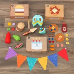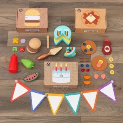 - Three themed food boxes: burgers, birthday and breakfast; felt toppings for textural exploration