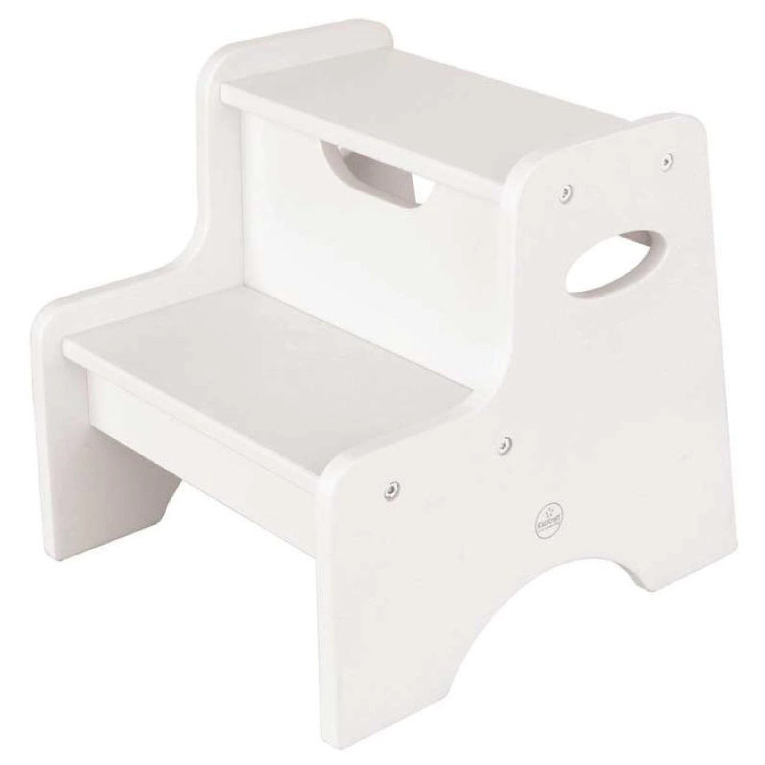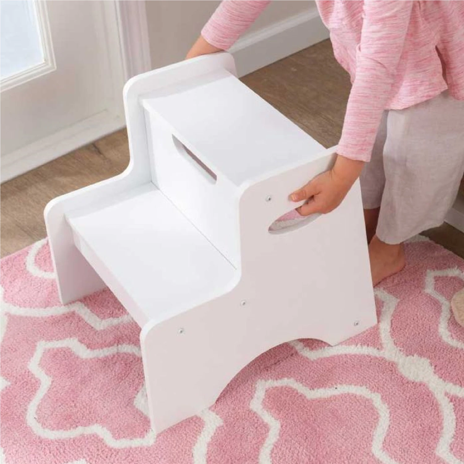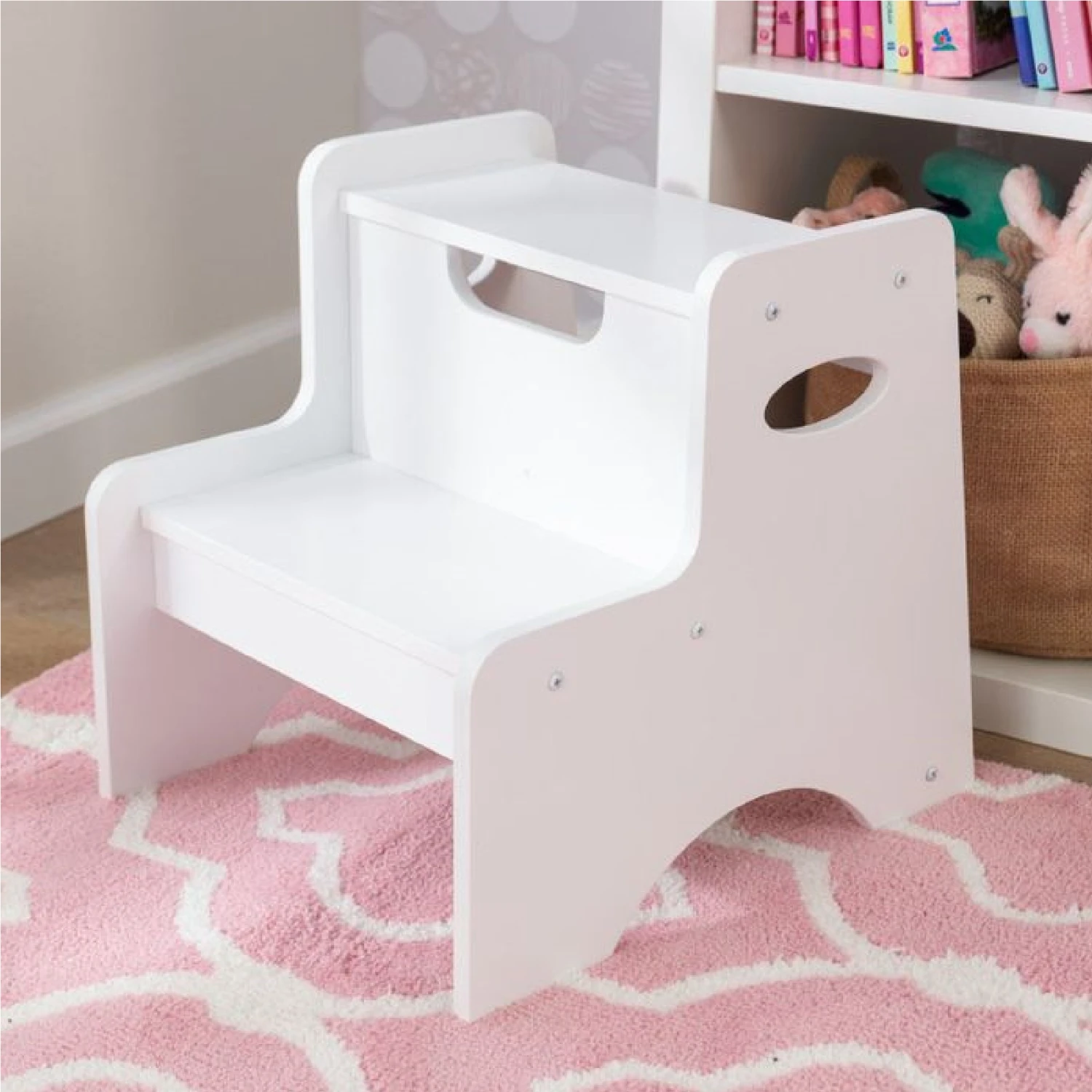 The Kidkraft White Two Step Stool brings kids two steps closer to independence. Sturdy wood construction makes this a safe and sturdy gift for kids that like to do things on their own, and parents love the handsome, easy-clean finish.